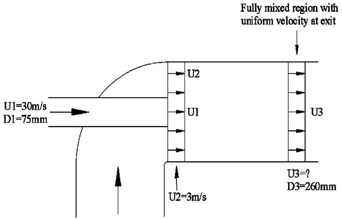 ¹Ï¤¤¦³¤ôºj¦bºÞ¤º¥H¬y³tU1 =30 ms-1¸g¹L¤ôºÞ¡A¤ô±qºj¤fª½®|0.075 m¶i¤J¡A¦Ó¤ôºÞ¤º¤ô¬y¤S¥H¬y³tU2 =3 ms-1¬y°ÊµÛ¡C¨D³Ì«á¤ôºÞ»P¤ôºj¤§¤ôÀ£²V¦Xéw«á¤§¬y³tU3¡C