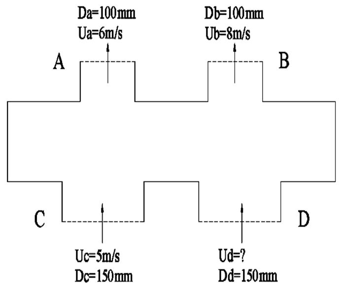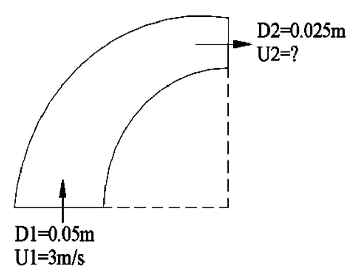 ¹Ï¤¤Ås90∘¤§¤ôºÞ¤J¤ô¦ì¤º®|D1¬O50 mm¤J¤ôÀ£P1¬°3000 N/m2¡A¬y³tU1¬O3 ms-1¡F¥X¤ô¦ì¤§¤º®|D2¬O25 mm¡A¥X¤ôÀ£P2¬°2000 N/m2¡A¬y¶qºû«ù3 mins«á²×¤î¡C